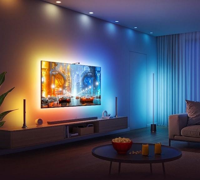 Immersive Home Theatre Experience Ljussystemet ändrar effekter och ljusstyrka synkroniserat med både bilder och ljud på skärmen, för en verklig uppslukande upplevelse.