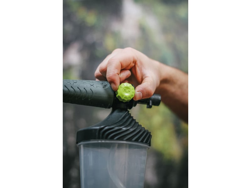 AVA premium skumkanonsats är det perfekta tillbehöret för noggrann och effektiv rengöring. I setet ingår en skumkanon med skumfilter av syrabeständigt stål och mässingsmunstycket säkerställer en lång livslängd. Sugslangen är en högkvalitativ silikonslang som förblir mjuk och flexibel över tiden. Detta set innehåller två lock och tre 1-liters behållare i olika färger, så att du kan skilja på olika tvålar och rengöringsprodukter. Du kan använda standardflaskor eftersom de flesta 1-liters tvålflaskor har samma trådar. AVA har också skapat lock med staplingsfunktion så att du kan stapla behållare ovanpå varandra för enkel förvaring. Detta är ett idealiskt set för både nybörjare och erfarna användare som vill ha en mer noggrann och effektiv rengöring av bilen och andra ytor.