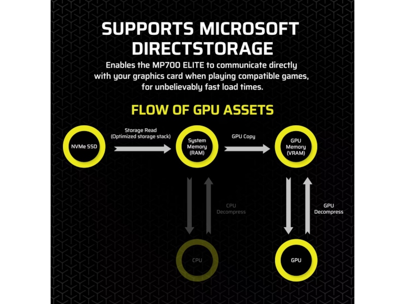 Enables the MP700 ELITE to communicate directly with your graphics card when playing compatible games, for unbelievably fast load times.