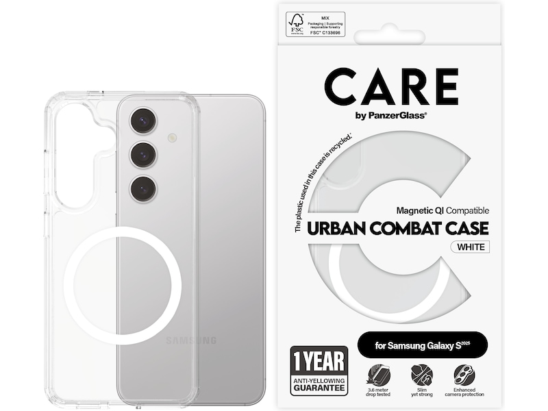 PanzerGlass CARE Galaxy S25 Urban Combat Qi skal (vit)