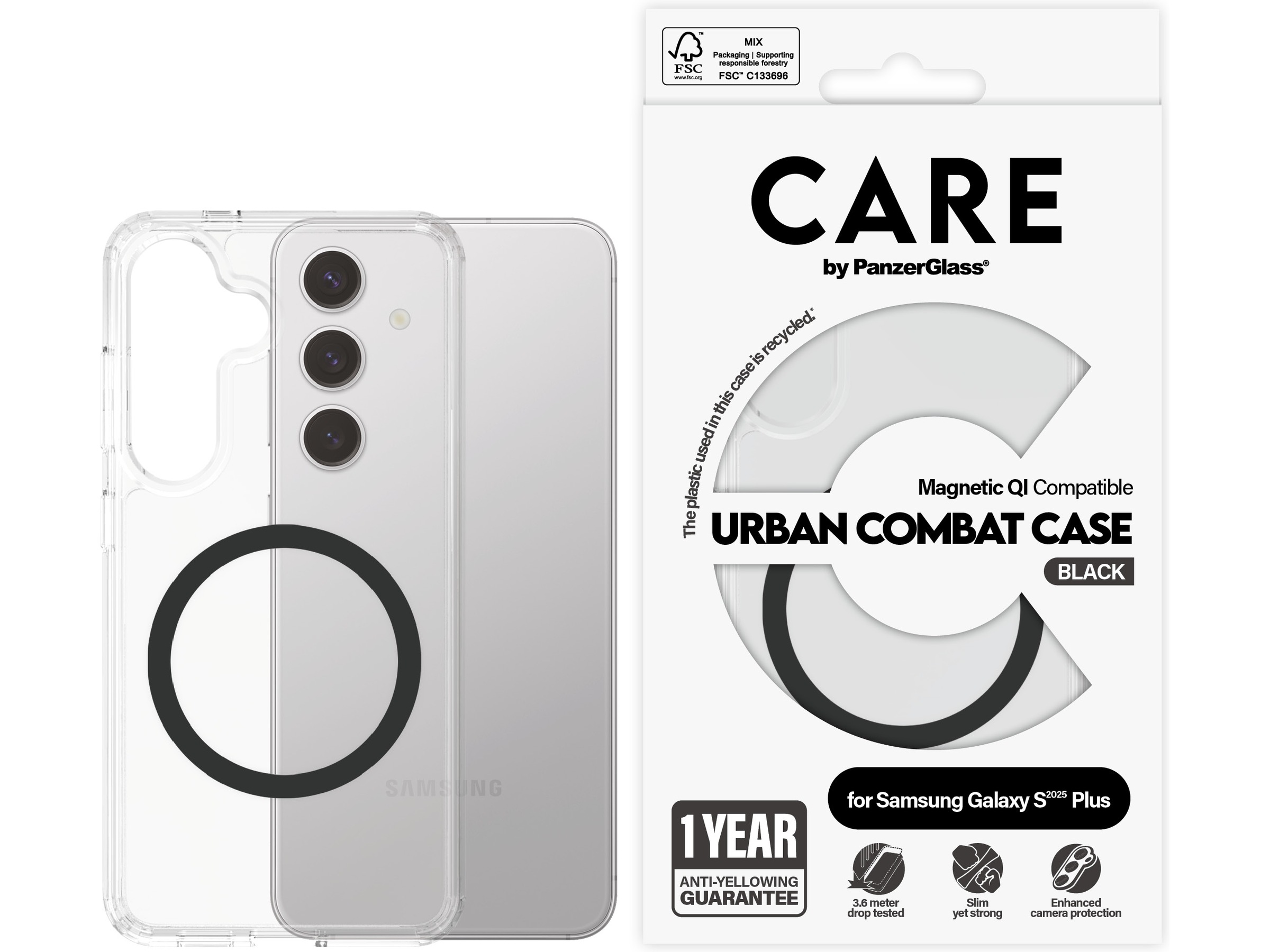 PanzerGlass CARE Galaxy S25+ Urban Combat Qi skal (svart)