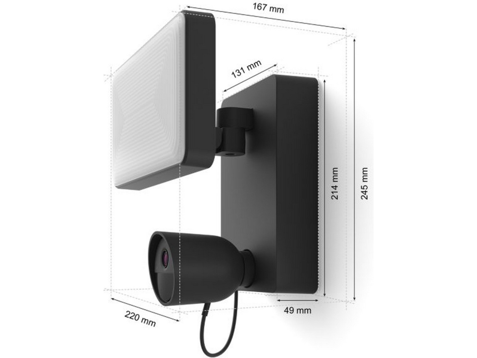Sound alarm, End-to-End Encryption, Live View-kontroll, 2250 lumens floodlight sensor, Natt- och mörkerseende, Motion-activated notifications |