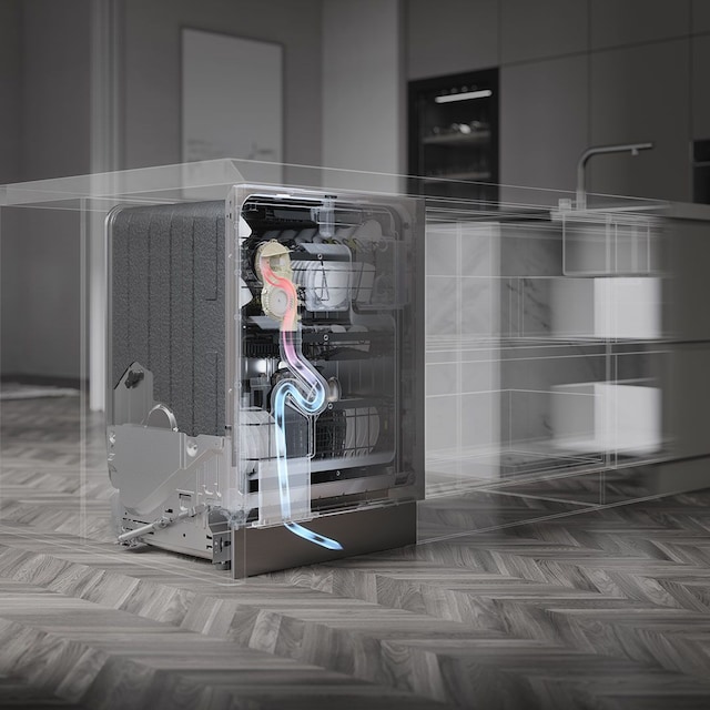 Om du öppnar luckan till vår nya diskmaskin kan du få upp ögonen för lite av allt. Det högkvalitativa stålet är kanske det första som fångar din uppmärksamhet. Därefter är det kanske en av maskinens många smarta funktioner. Dessa är framhävda med en färg som imiterar hur naturen sätter saker i fokus. När du stänger dörren sätts maskinen tillbaka på plats – där den inte konkurrerar om utrymme eller uppmärksamhet – istället skapar den mer utrymme.