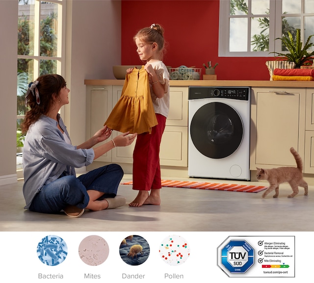 *Bilder och video är endast för illustrativa ändamål och kanske inte representerar produkten helt korrekt. Certifierad enligt regel IEC 60456-2022, certifieringsnummer 4840123157301 från TÜV SÜD. Baserat på intern testning som utförts av tillverkaren. Beräknad baserat på tvättmängden för en familj på tre personer med en tvättfrekvens varannan dag. Individuella resultat kan variera.