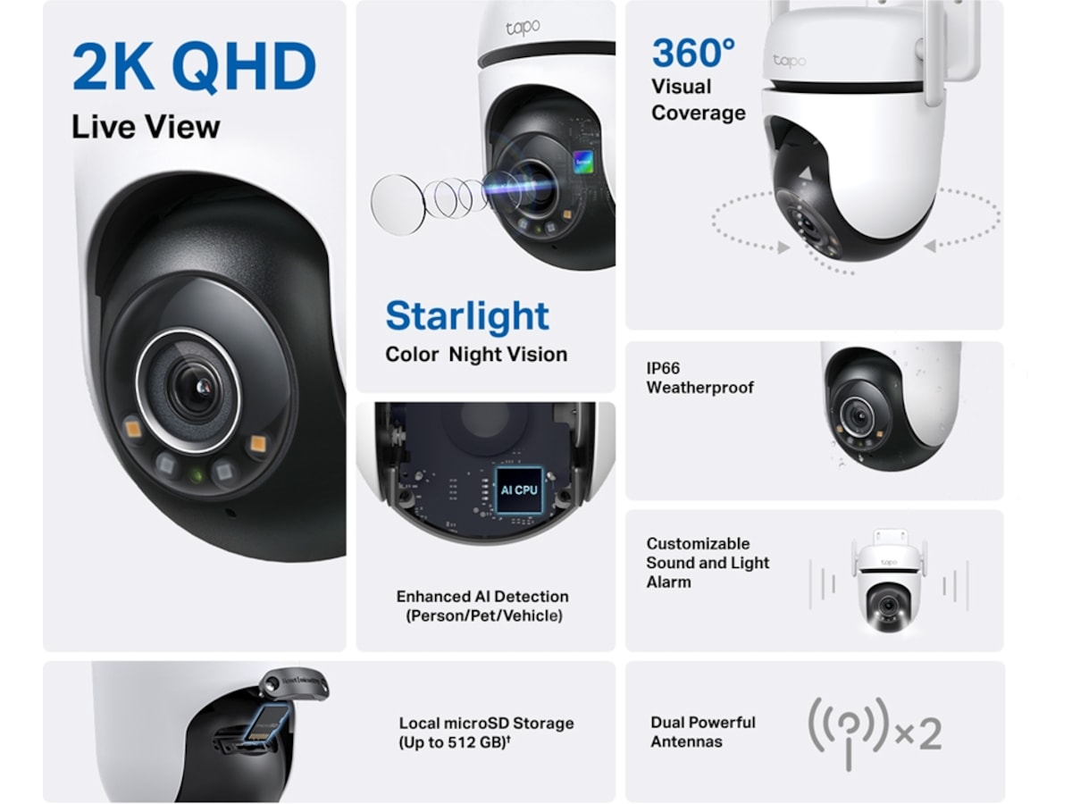 - 2K QHD Live View-Med en upplösning på 2560 × 1440 erbjuder Tapo C520WS 1,7 × fler pixlar och levererar skarpare bilder än 1080p.