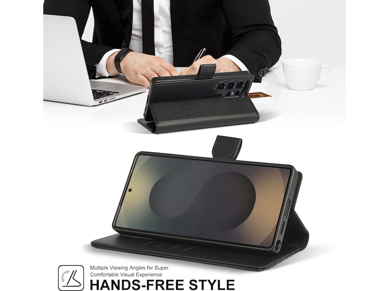 Magnetfunktionen säkerställer att fodralet hålls stängt, även när telefonen ligger i jackfickan eller datorväskan. Detta förhindrar repor på skärmen i händelse av en olycka.