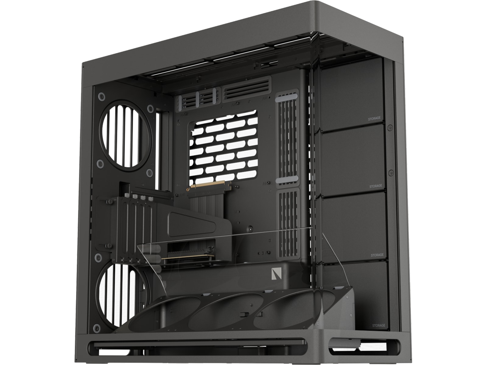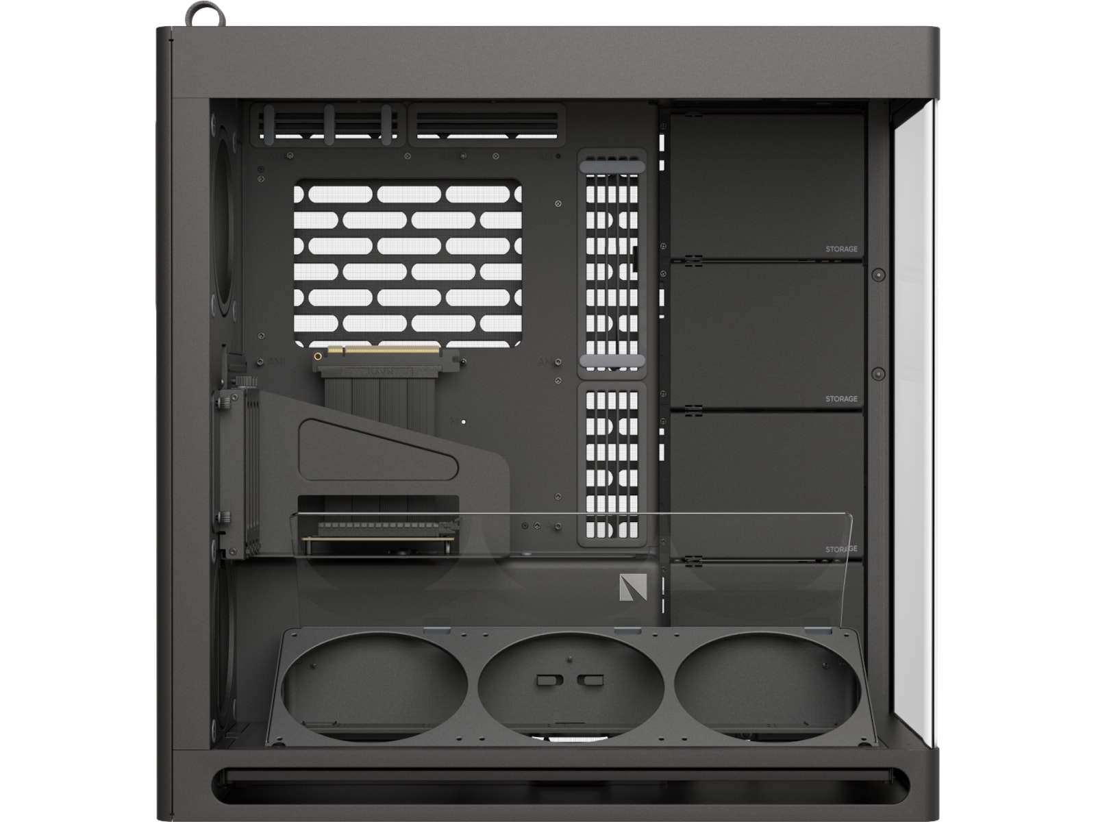 HAVN Hybrid Structure placerar GPU:n fram och tillbaka, helt framställd bakom Unisheet-glaset med panoramautsikt. Den här designen framhäver inte bara dina nyckelkomponenter utan förbättrar också GPU-luftflödet för optimal prestanda.