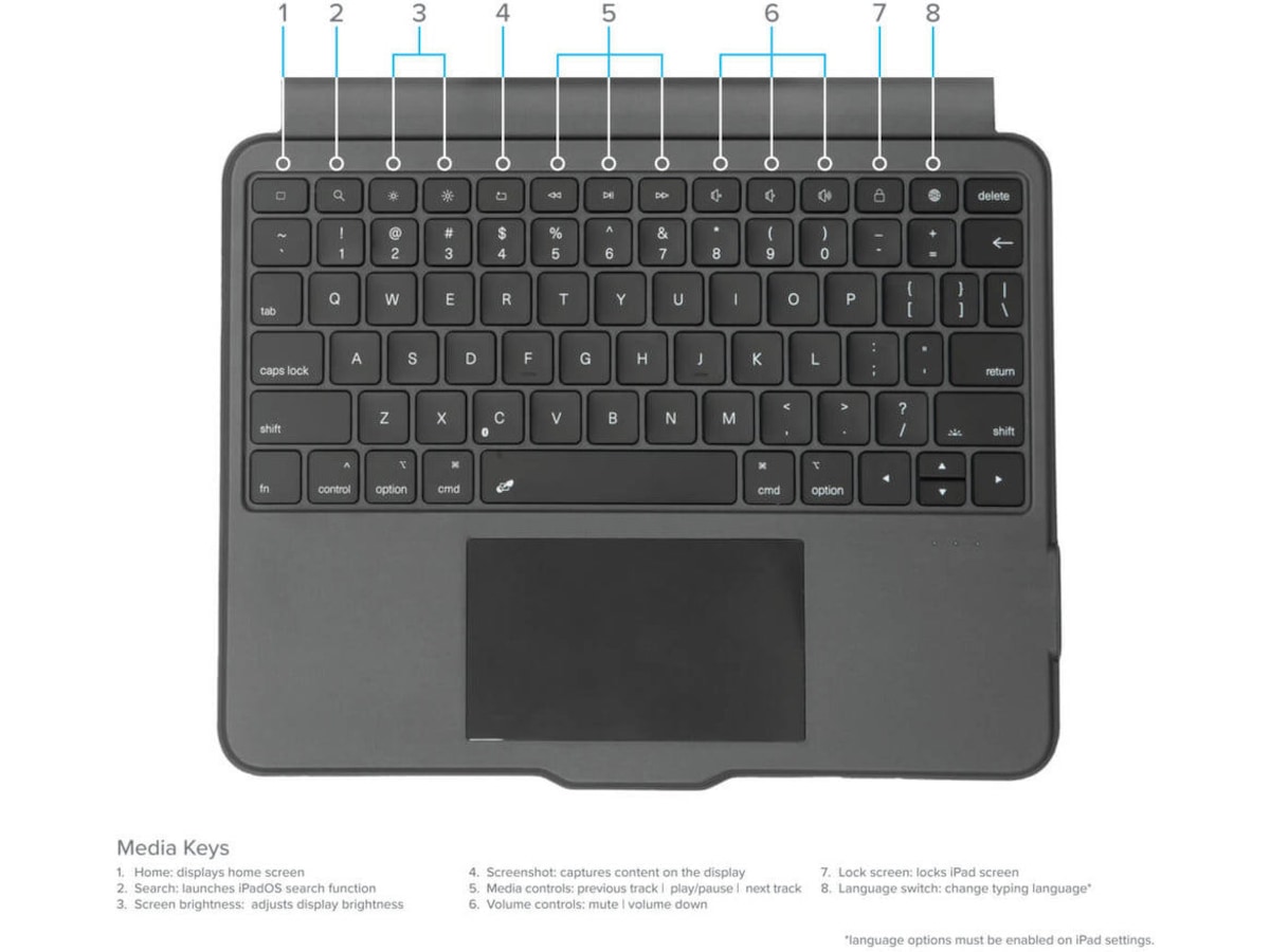 Möt VersaVu® Bluetooth® Keyboard Case för iPad, ett skyddande tangentbordsfodral som är gjort för att öka produktiviteten. Med en nordisk tangentbordslayout, multi-touch-styrplatta och mediagenvägstangenter omdefinierar vi vad ett tabletfodral kan göra.