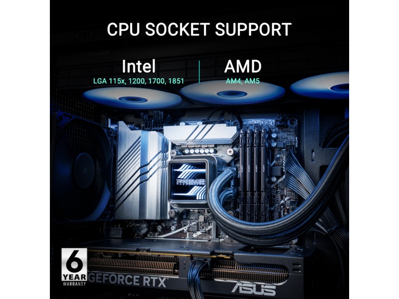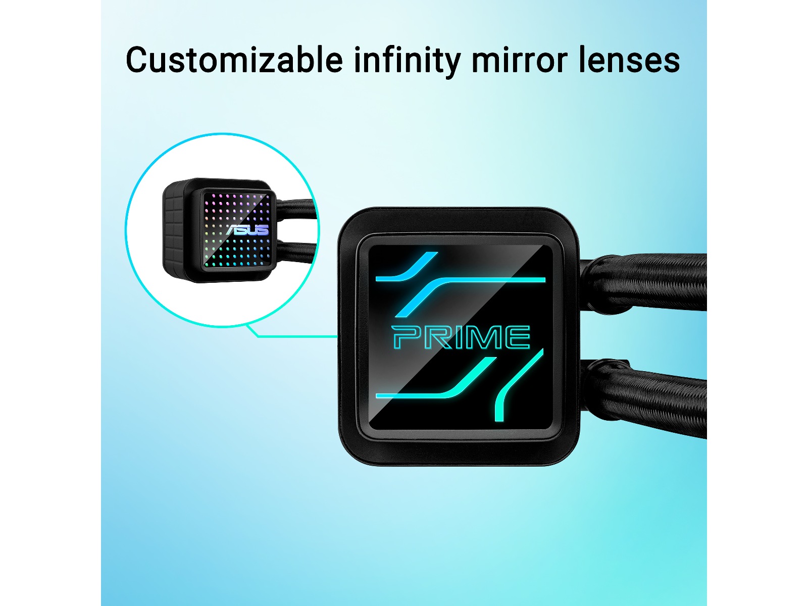 Förstärkta rör, Gummirör (400 mm), ARGB fans, Förapplicerad termisk pasta, Pumpkåpa med evighetsspegel, PWM-kontroll, ASUS Aura Sync