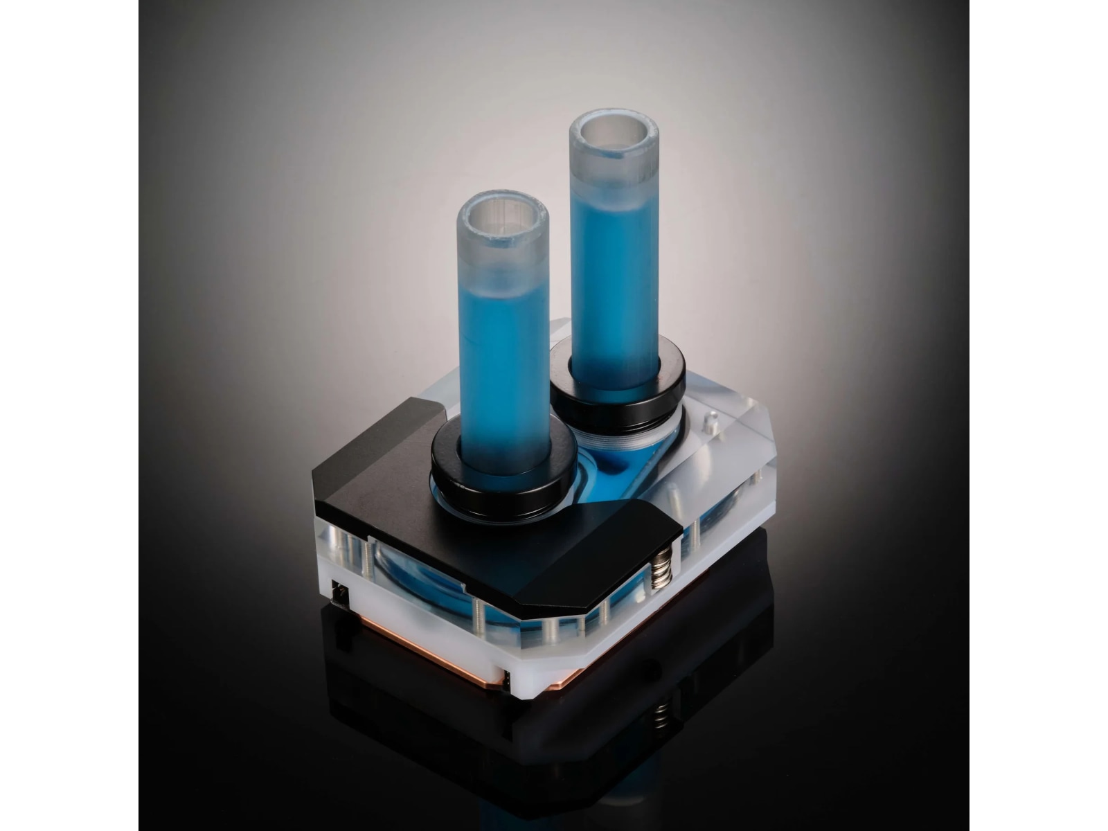 Glacier EZ-Fit 450CPU block har två integrerade 16mm anslutningar som gör att du kan börja bygga din kylningsslinga direkt. Dess 100% kopparbas är konstruerad med en omfattande yta och en innovativ mikrofin array med fenor som bara mäter 0,15 mm, vilket maximerar värmeavledningen för exceptionell kylprestanda.