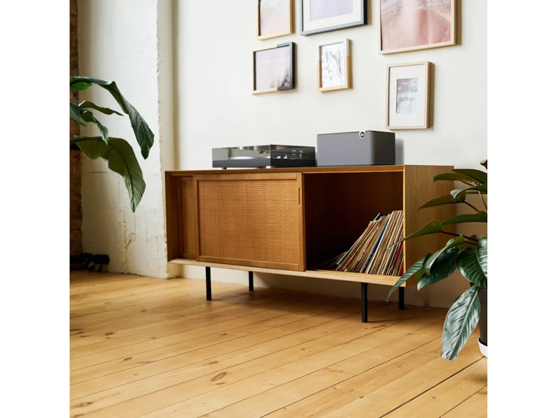 Med de inkluderade Phono/RCA-ingångarna kan The Three Plus enkelt anslutas till din skivspelare så att dina favoritvinylskivor kan spelas med stil.
