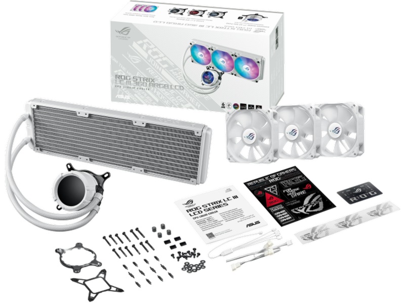 2.1" Full Color IPS LCD-skärm, Mantlade gummirör (400 mm), Antivibrationsgummidynor, ASUS Aura Sync, 7:e generationens Asetek-pump, 0dB Teknik, ARGB fans, Stöd för PVM (Pulse-width modulation), Förapplicerad termisk pasta