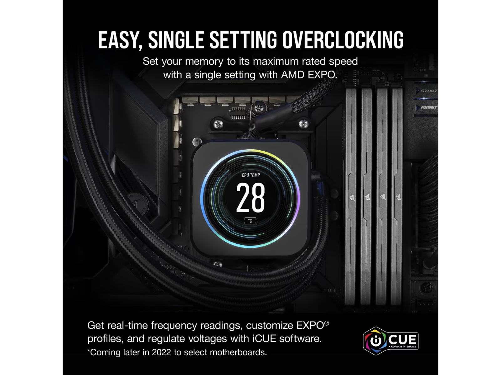 Du har makten och kontrollen. Inbyggd spänningsreglering med iCUE mjukvarukontroll ger en enklare, finjusterad utgång som ger mer stabil överklockning än någonsin.