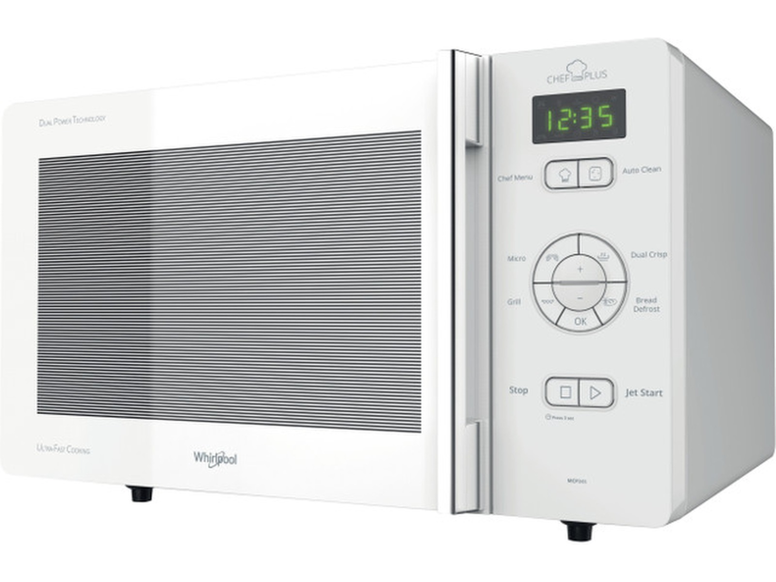 Denna fristående mikrovågsugn från Whirlpool har följande funktioner: Grillfunktion. Krispfunktion, för otroligt krispiga pajer, pizza och pajer.