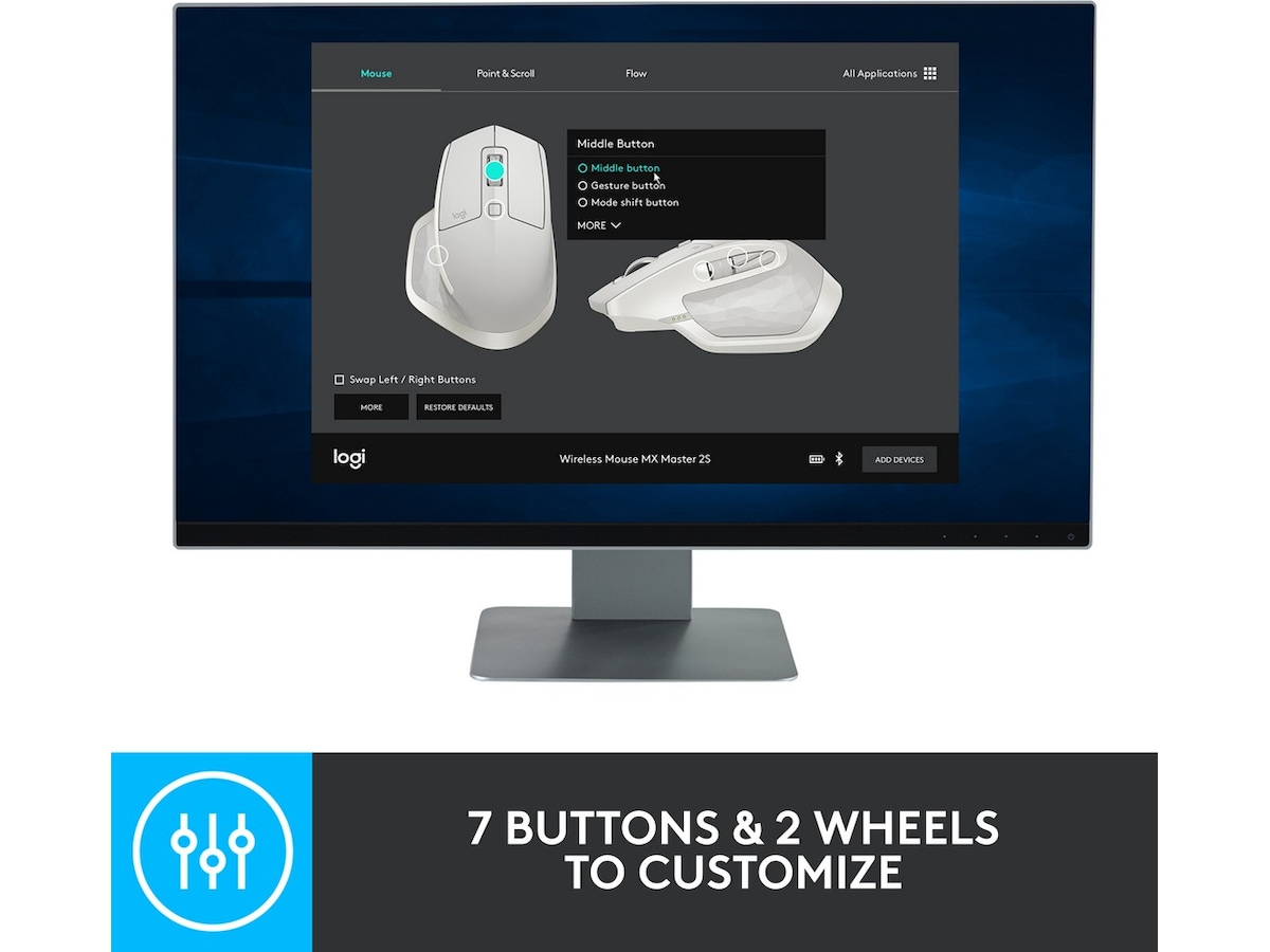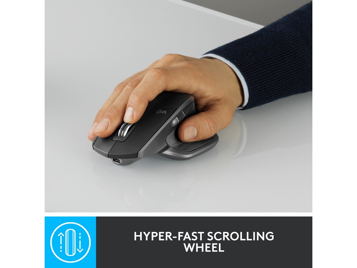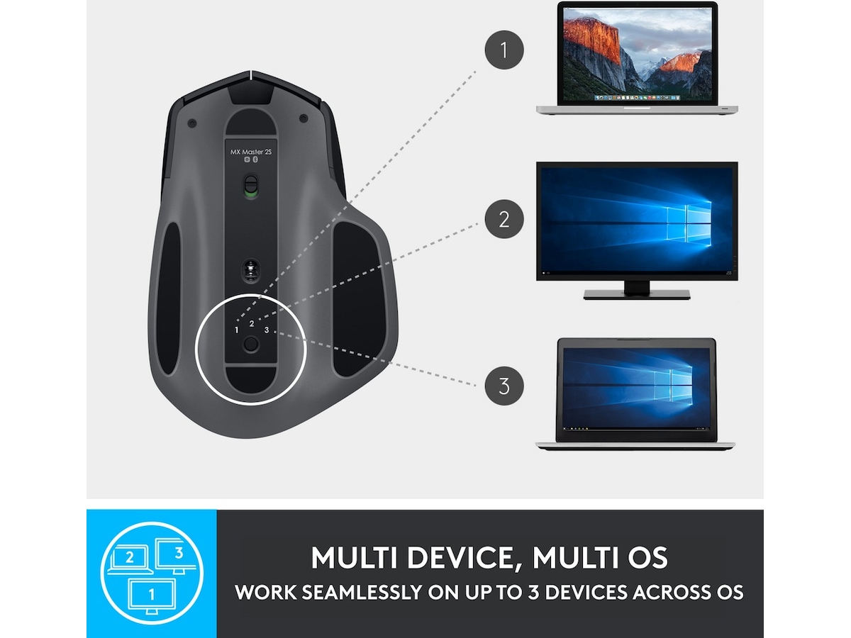 Upp till 3 enheter kan parkopplas, Bluetooth Low Energy-kompatibel, Logitech Darkfield Laser Tracking, Logitech Unifying-mottagare, Justerbart rullningshjul