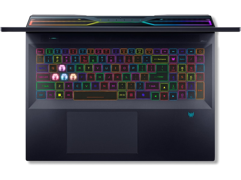 Få det RGB-bakgrundsbelysta tangentbordet att glänsa med Mini LED-bakgrundsbelysning som är ljusare, kräver mindre ström och har en jämnare färg (med mindre halo) än sina motsvarigheter som inte är Mini LED. Gå till PredatorSense™ för att ytterligare anpassa RGB till din egen stil.