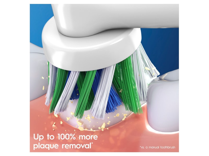 CrossAction är ett av Oral-Bs premium refill-borsthuvuden och har precist vinklade borststrån som bekämpar plack för att ta bort upp till 100 % mer plack jämfört med en vanlig, manuell tandborste. Formen på Oral-B CrossAction borsthuvudet har speciellt utvecklade borststrån som är utformade för optimal täckning av tänderna. De unika borststråna når djupt mellan tänderna för att ta bort plack och lämnar hela munnen renare än en vanlig, manuell tandborste. Kompatibel med alla oscillerande/roterande borstar.