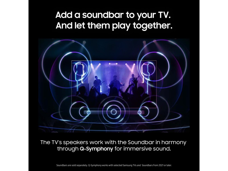 Minikartszoom, Smart kalibrering, Stöd för SlimFit Cam, Hue Sync, Workout Tracker, Karaoke-mikrofon, Samsung Vision AI, Super Ultra Wide Game View, Daglig tavla, Wireless TV On, Apple AirPlay-support, Gesture Control, Samsung Daily+, Spelfält, FreeSync Premium, Fjärrstyrning med smartmobil, Samsung Knox Security, 7 års uppgraderingar av Tizen OS |