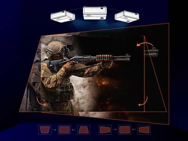2D Keystone eliminerar enkelt trapezoid-effekter när du projicerar från olika platser i rummet.