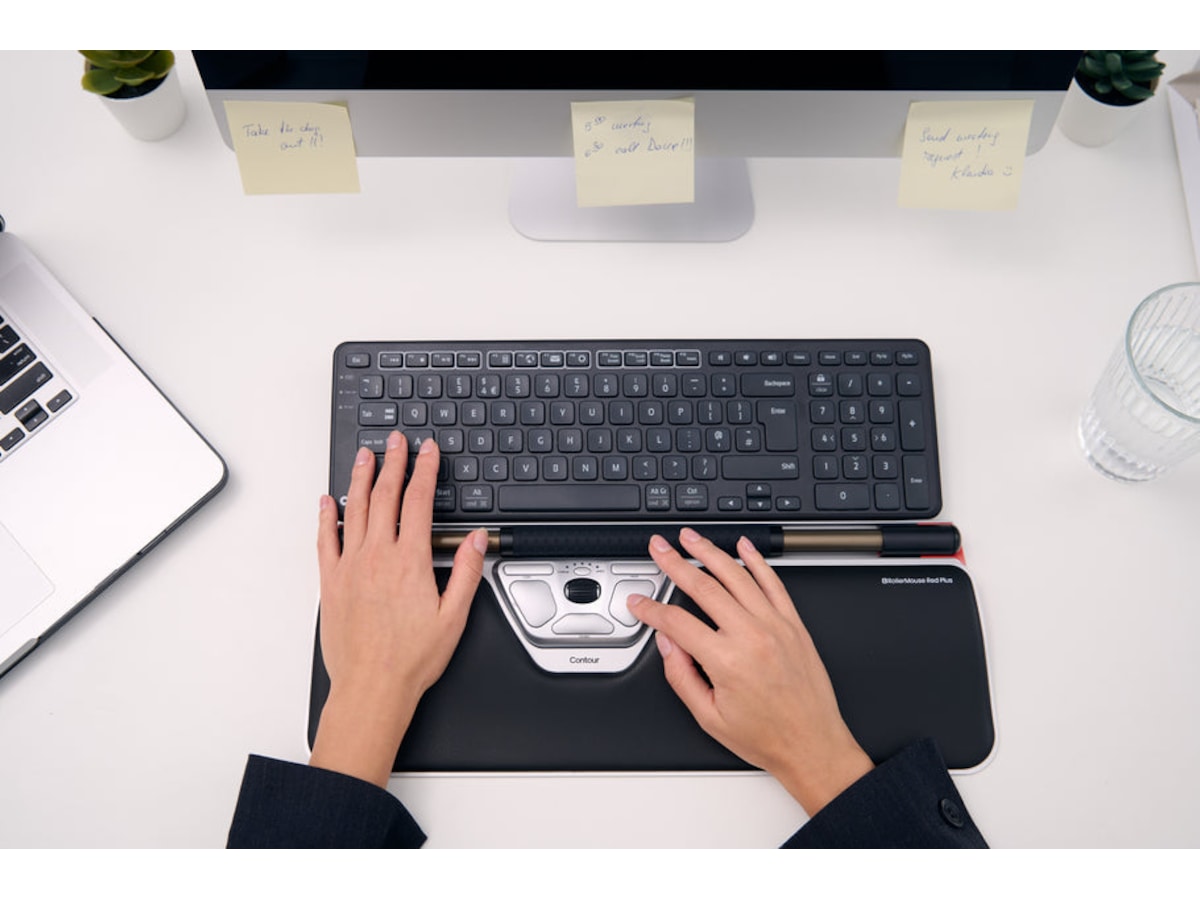 RollerMouse Red gör det enkelt att navigera i skärmområdet, oavsett om du använder en eller flera skärmar. Markörens räckvidd anpassas automatiskt, så det är lätt att arbeta med flera skärmar samtidigt. Den stabila, gummiklädda rullstav med strukturoverface gör det lätt att flytta markören och klicka precist – något som betyder mycket vid intensivt datorarbete.