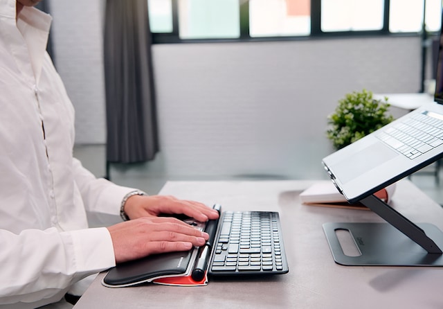 Det smala handledsstödet är idealiskt för mindre händer och kompakta arbetsstationer.