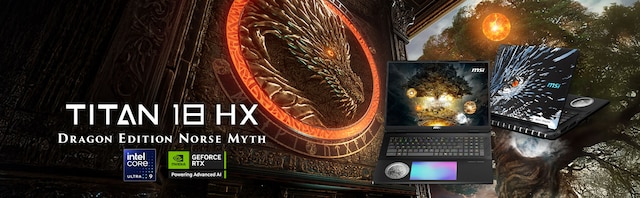 MSI:s Titan 18 HX Dragon Edition Norse Myth omdefinierar standardet för gaminglaptops. Drivs av den senaste Intel® Core™ Ultra 9-processorn 285HX och upp till NVIDIA® GeForce RTX™ 5090 Laptop GPU, levererar denna begränsade upplaga oöverträffad prestanda med en fantastisk design inspirerad av nordisk mytologi. Med intrikata gravyrer och en drakens ande-plakett är det mer än bara en högpresterande laptop—det är ett äkta samlarverk. Byggd för dem som kräver legendarisk kraft och hållbarhet.