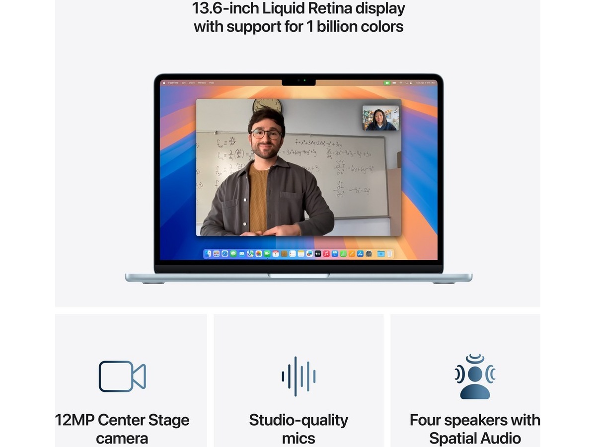 - KRISTALLKLAR SKÄRM – Liquid Retina-skärmen på 13,6 tum har stöd för en miljard färger.(2) Bilder och videor sticker ut med hög kontrast och tydliga detaljer, och text blir superskarp.