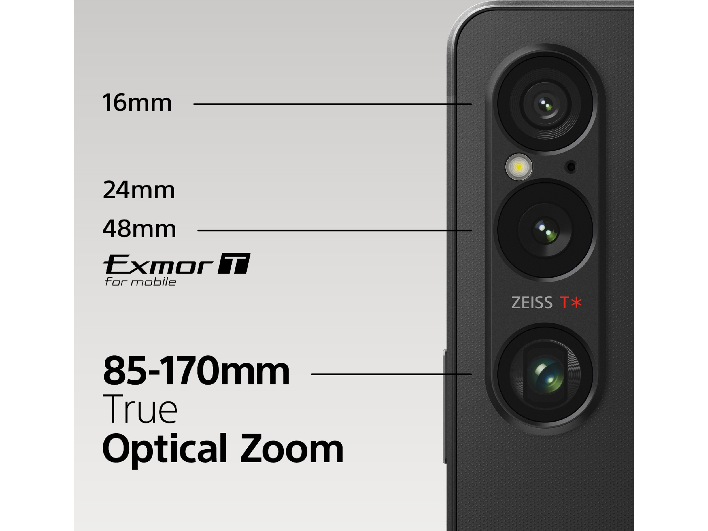 Upp till 60 gånger per sekund kontinuerlig AF/AE-beräkning, ZEISS T-beläggning, Objektspårning, Upp till 30 fps AF/AE, Live streaming för extern bildskärm, Eye AF, AI Super Resolution Zoom, Eye AF i realtid för människor och djur, ZEISS-optik, RAW bildtagning, S-Cinetone för mobil |