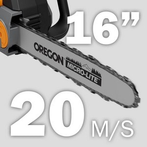 Kedjan är av typen Oregon 40 cm (16”). Bladet har automatisk oljesmörjning och en kedjehastighet på 20 m/s.