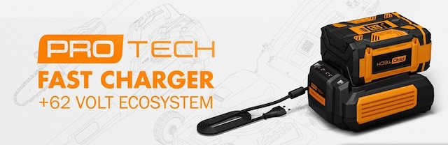 Protech +62 Volt batteriverktyg är en serie produkter som använder samma batteripaket. Protech +62 Volt är ett modernt och miljövänligt batterisystem. Batteriet har en stark spänning som gör det möjligt för verktygen att hantera även de tyngsta uppgifterna i trädgården.
