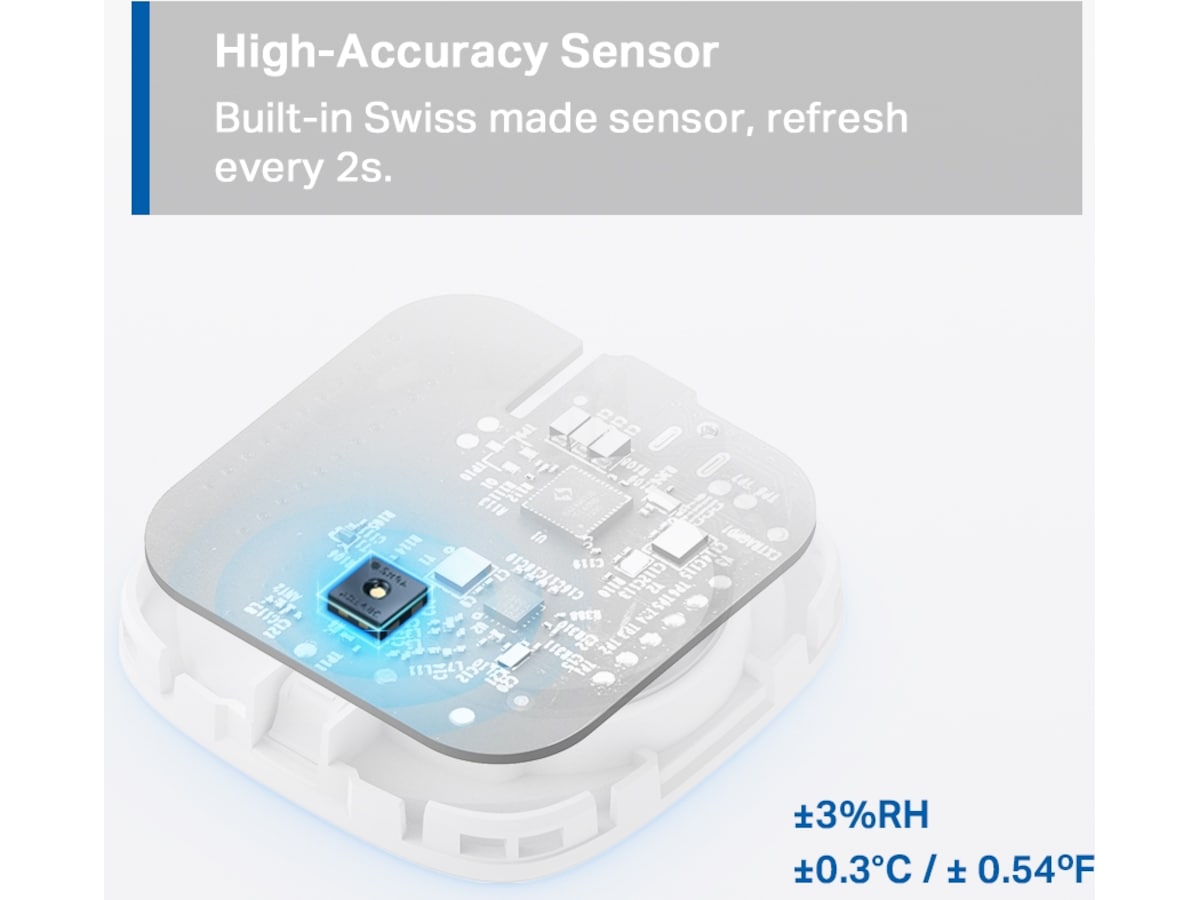 Tapo T310 Tapo Smart Temperatur- och Fuktighetsmätare Snabb & Exakt Övervakning - Upptäcker temperatur och luftfuktighet med hög noggrannhet. Uppdateras varannan sekund. (Noggrannhet: ±0,3 °C, ±3% RH)Hemautomation - Slår på/av elektroniska apparater automatiskt när inställningarna faller utanför sina förinställda intervaller.