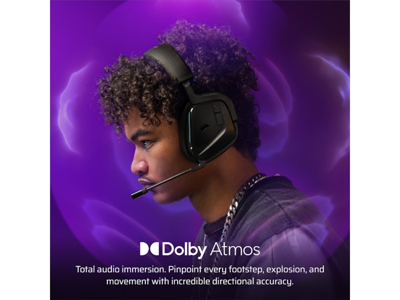 Hör allt runt omkring dig i dina favoritspel med skräddarsydda 50 mm-drivrutiner och Dolby Atmos® Spatial Audio. Håll dig ansluten med ultrasnabb 2,4 GHz trådlös anslutning* eller Bluetooth®, och spela längre med upp till 70 timmars batterilivslängd. Med snabbladdning får du 6 timmars batteritid efter bara 15 minuters laddning. Designad för PlayStation 5, PC med mera - VOID WIRELESS v2 erbjuder flersystems kompatibilitet och ventilerande memory foam öronkuddar för heldagskomfort. Den rundstrålande mikrofonen har NVIDIA Broadcast®-teknik** för att säkerställa att din röst är klar och fri från brus. Med öronkontrollerna kan du stänga av ljudet och justera volymen samt omedelbart byta lägen, medan iCUE-programvaran ger dig full kontroll över ljud och RGB-ljus.