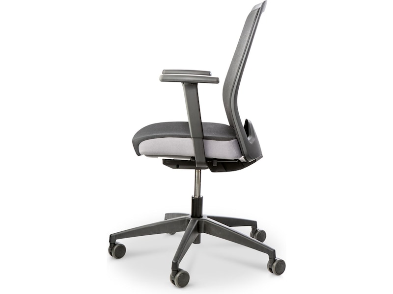 Med flera internationella priser för sin design och konstruktion är Interstuhl EVERYis1 stolt över sin 10-åriga garanti, vilket är ett övertygande bevis på dess kvalitet och hållbarhet. Stolens höjdjustering (410 - 515 mm) möjliggör en perfekt anpassad sittposition för överlägsen komfort. Stolen är klädd i grafitfärgat Manhattan-tyg med en stilfull grå kantdetalj, vilket ger den en exklusiv och modern estetik. Den automatiska synkronmekanismen (45 - 120 kg) säkerställer att sätet följer användarens rörelser för att ge bästa möjliga stöd och komfort. Sittdjupet är justerbart (450 - 510 mm) för att passa olika längder och kroppstyper och erbjuder gott om plats för rörelse med ett brett säte på 52 cm bak och 42 cm fram. Med en ventilerande nätrygg och justerbart rörligt svankstöd som kan anpassas i höjd- och djup riktning (50 mm justering) är Interstuhl EVERYis1 utrustad för att ge den ultimata sittupplevelsen. De höjdjusterbara 2D-armstöden kan justeras i sidled (ca. 1,5 cm) för att ge stöd till armar och axlar under arbetsdagen.