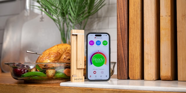 - Snabbladdning: när du är klar med att utforska MEATER-appen är du laddad för din första 2-timmars matlagning. En kort 15 minuters laddning räcker för att hålla i 12 timmar.