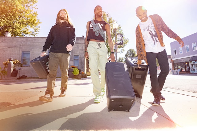 Stort ljud kommer med en fantastisk ljusshow – RB<G belysning i en mängd olika mönster och färger för att vara exakt. Appstyrda förinställningar bländar framsidan och sidorna av din nya Klipsch Party Speaker. Och medan du håller på, höj upp de låga frekvenserna. Spänn fast dig, för din Klipsch Music City Party Speaker kommer med inbyggd Ultra Bas — tryck bara på Ultra Bass-knappen eller anpassa EQ-inställningar i appen för att fördjupa de där droppen och skaka stället.