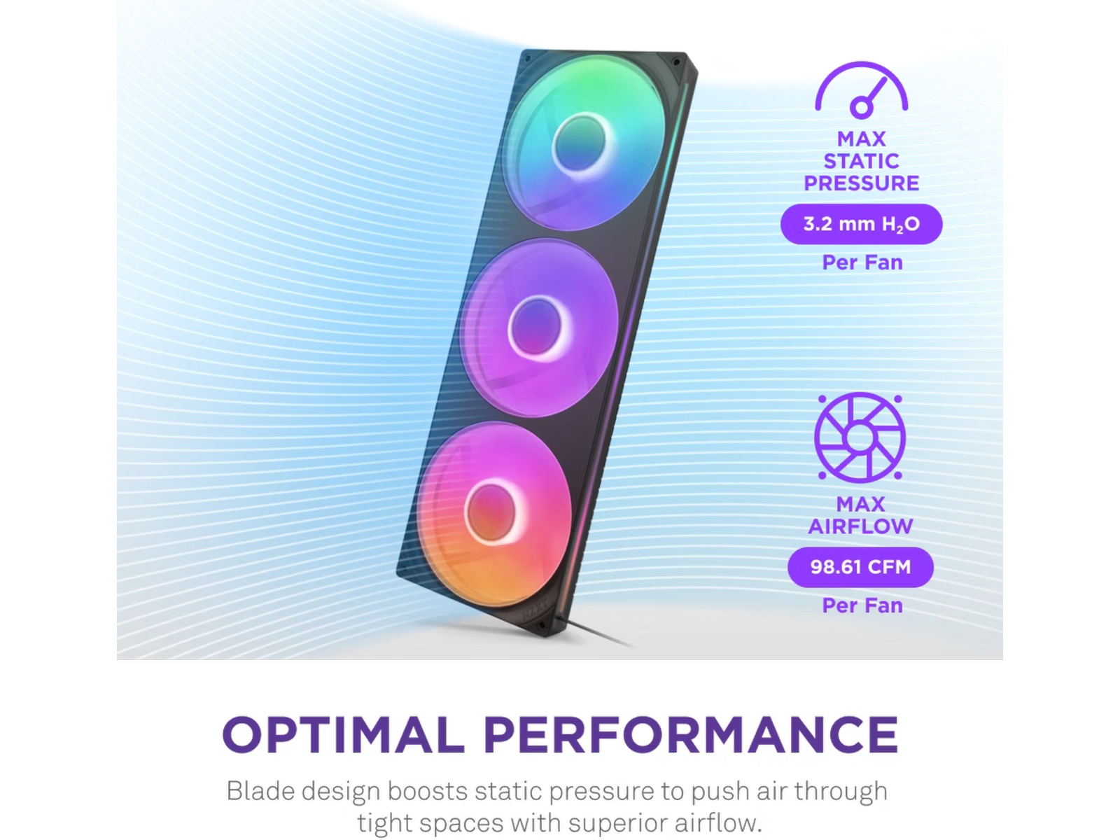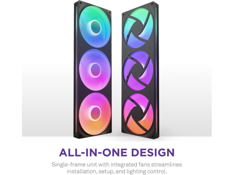 NZXT F Series RGB Core enbildsfläktar integrerar sömlöst flera fläktar för enkel installation samtidigt som de erbjuder överlägsen kylning, viskande tyst prestanda och slående RGB-bild.