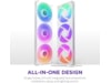 - Åtta individuellt adresserbara RGB-lysdioder per fläktnav sprids genom halvgenomskinliga blad för briljant färgglada bilder.