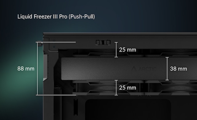 Observera att Liquid Freezer kräver minst 63 mm utrymme för installation