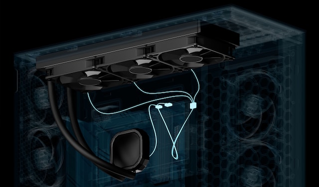 Med splitterkabeln kan pumpen, VRM-fläkten och radiatorfläktarna kontrolleras separat eller synkroniseras via en enda PWM-signal med allt-i-ett-kabeln.