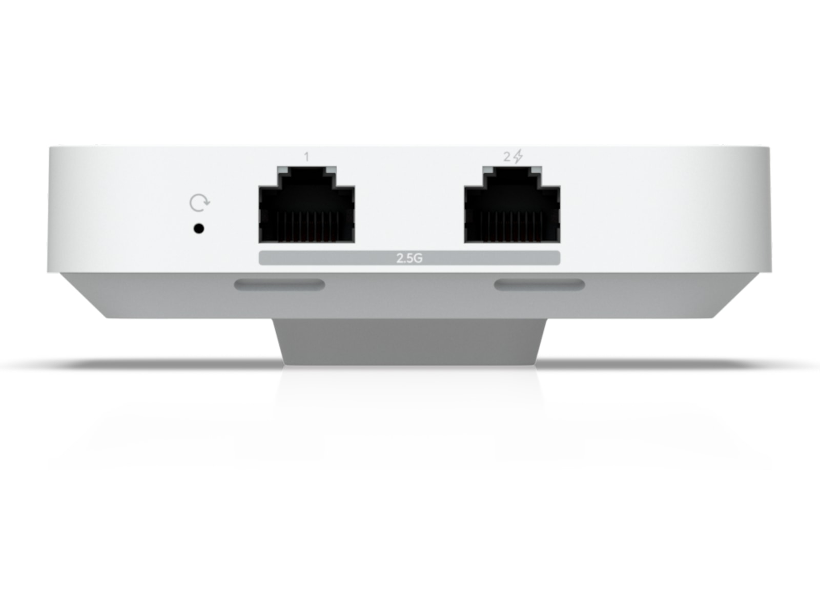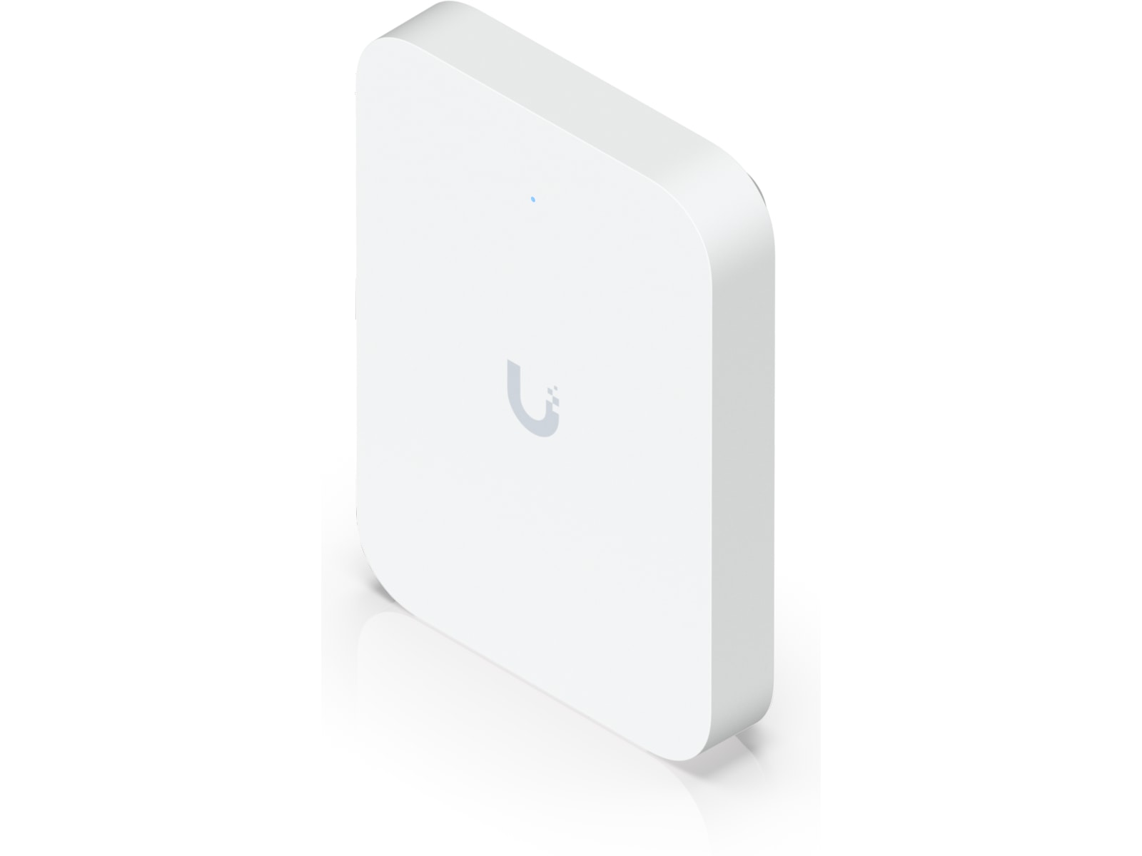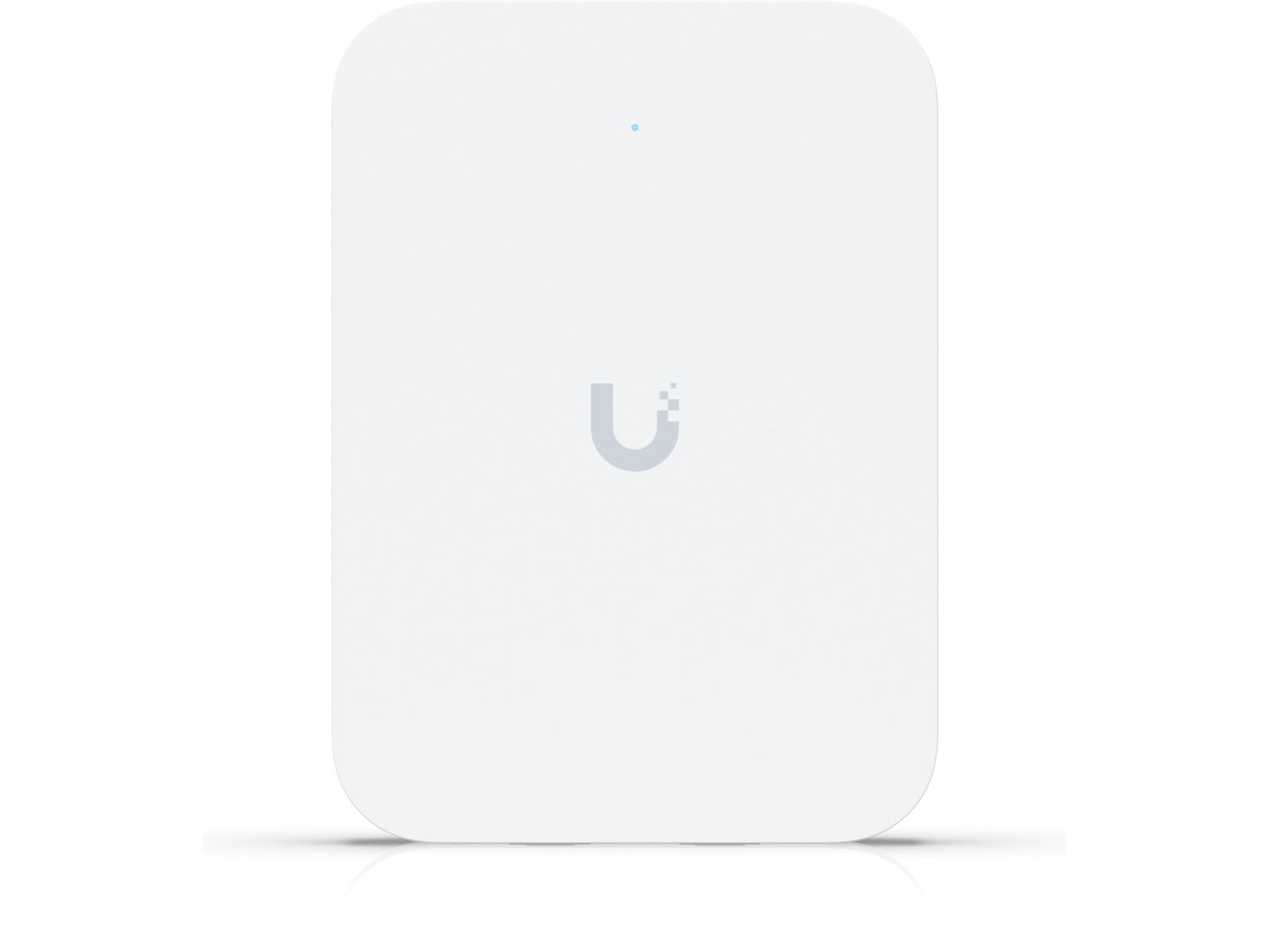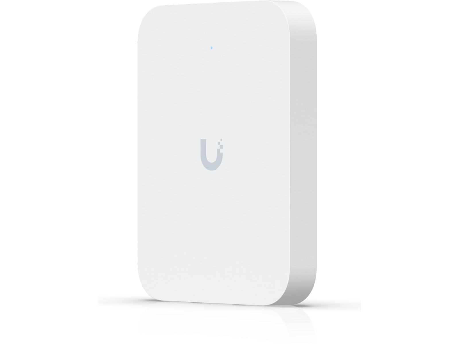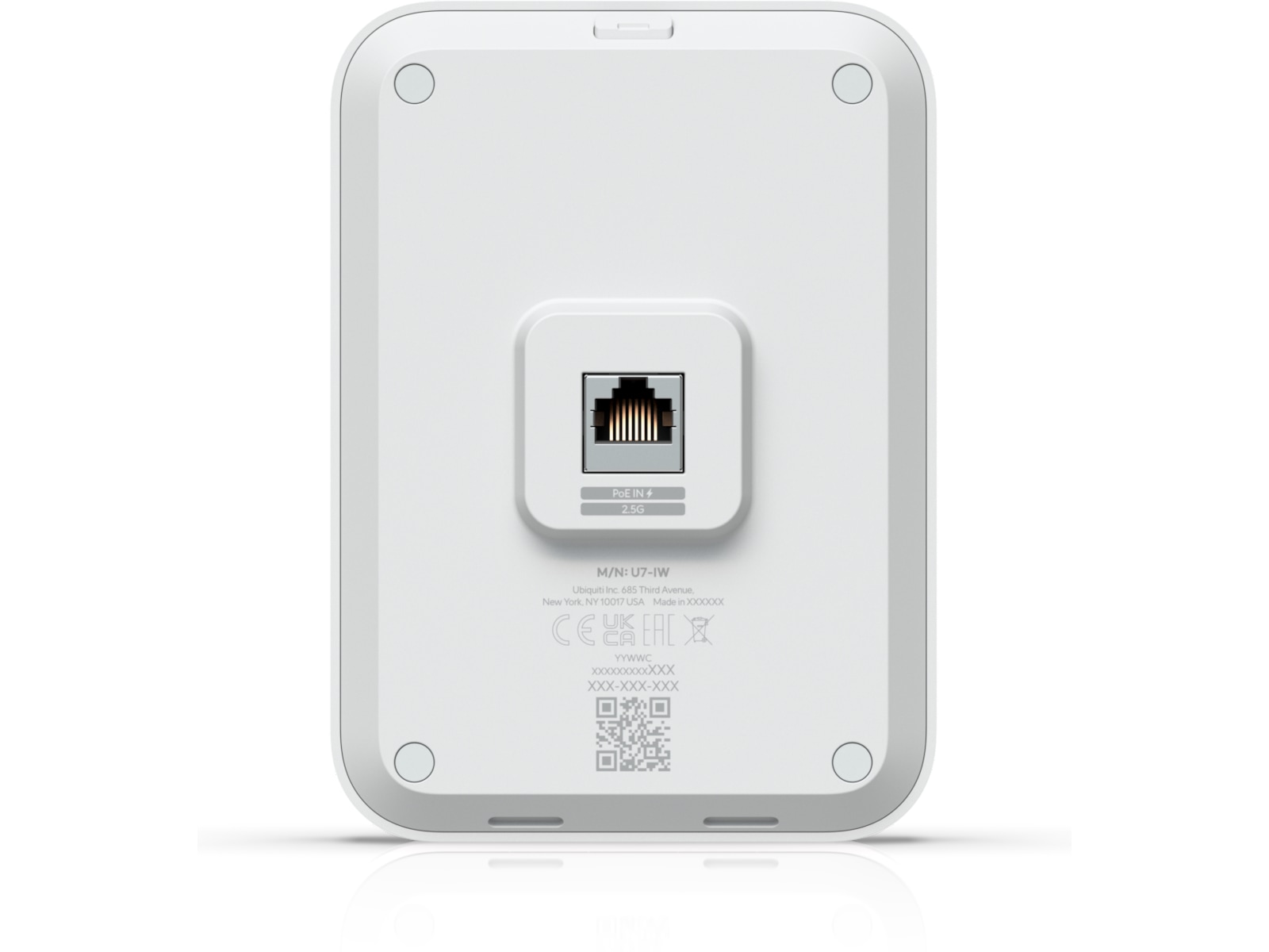 Ubiquiti Access Point U7 In-Wall Väggmonterad WiFi 7 AP med 4 rumsliga strömmar och en integrerad 2.5 GbE PoE-switch designad för hotellmiljöer.