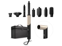 - 8 tillbehör: Inkluderar 2 autowrap-krulltänger, en volymborste, en paddelborste, en koncentrator, en DeFrizz-tillbehör, en rundborste och en diffuser.