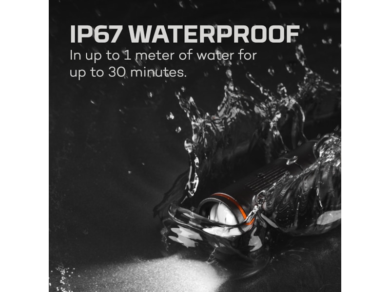 - Strobe (150 lumen): 50 minuter - 84 meter