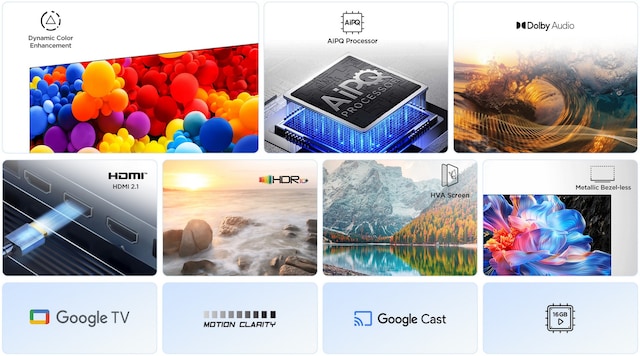 TCL:s egenutvecklade AiPQ-processor, innehåller flera av TCL:s unika bildkvalitetstuningalgoritmer. Denna chip har utmärkta intelligenta avkänningsegenskaper och kan göra justeringar på pixelnivå för bildkvaliteten, vilket ger en kvalitetsupplevelse av högsta klass.