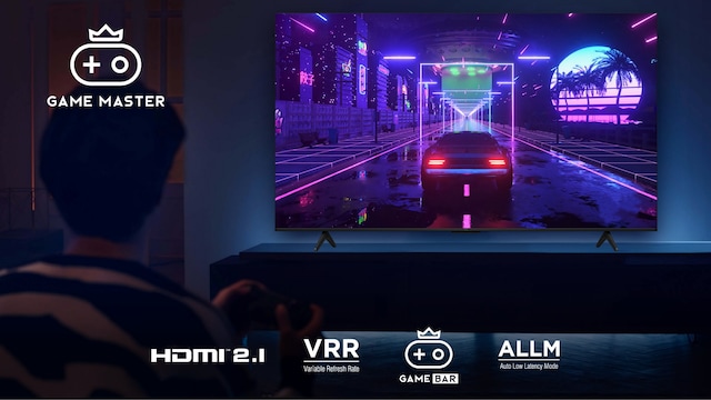 GAME MASTER: För spelare är en responsiv TV lika viktigt som en med bra bild. V6C-serien kommer särskilt med HDMI 2.1 och ALLM, du kommer att uppleva lägsta latens och de bästa bildinställningarna för spel automatiskt. Dessutom kommer den med VRR (Variable Refresh Rate)*, Game Bar och 120Hz Game Accelerator*.