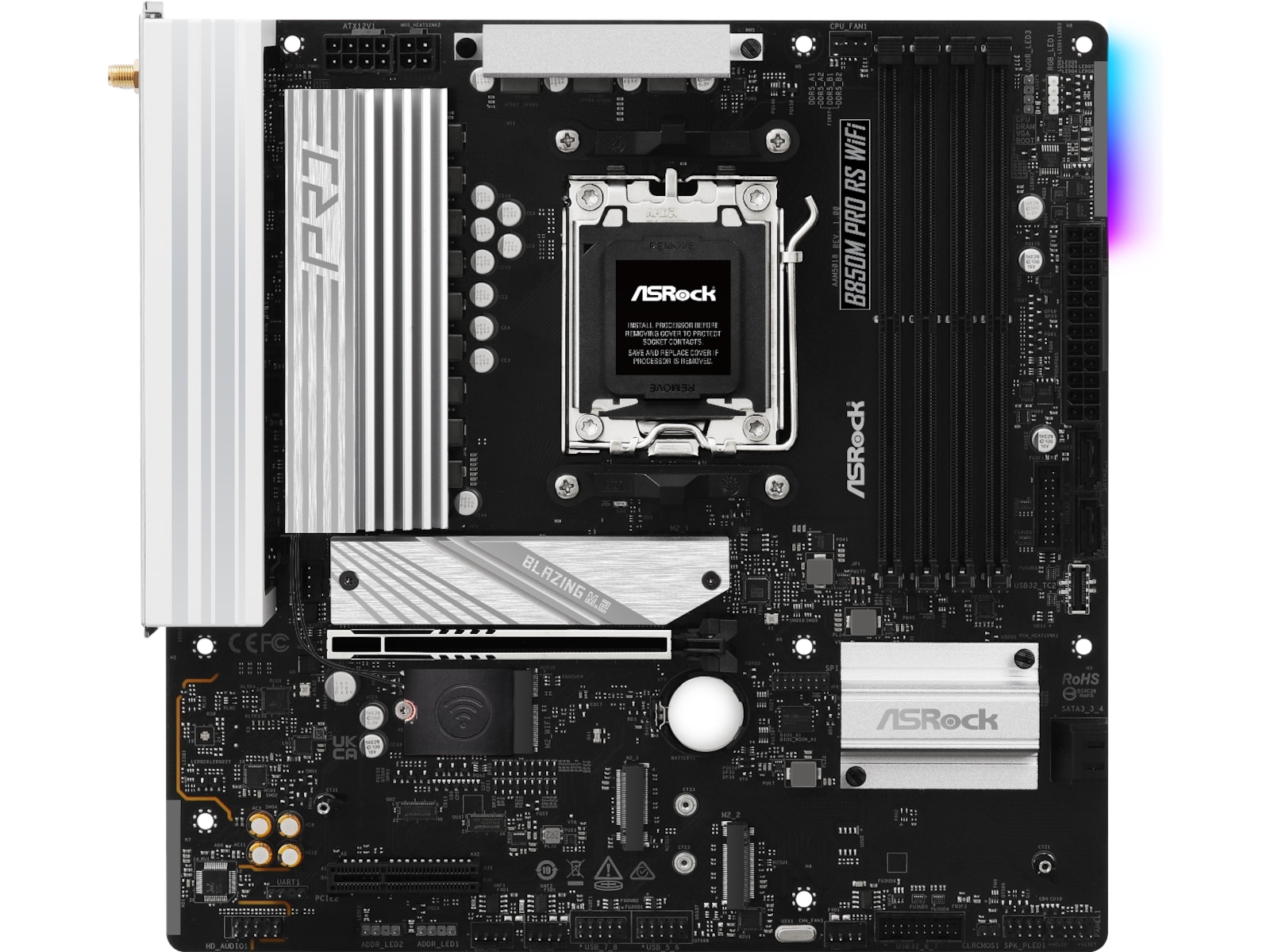 1 x PCIe 5.0 x16, 1 x CPU, 1 x PCIe 4.0 x16 (x4-läge), 3 x M.2 socket (2280 M.2 slot), 1 x M.2 socket (tangent E, för trådlös modul), 4 x DIMM 288-stift
