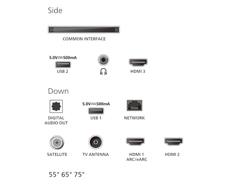 LAN - nedre del, HDMI - sida, USB - nedre del, Digital ljudutgång (optisk) - nedre del, 2 x HDMI - nedre del, Ljudutgång/hörlurar - sida, USB - sida |