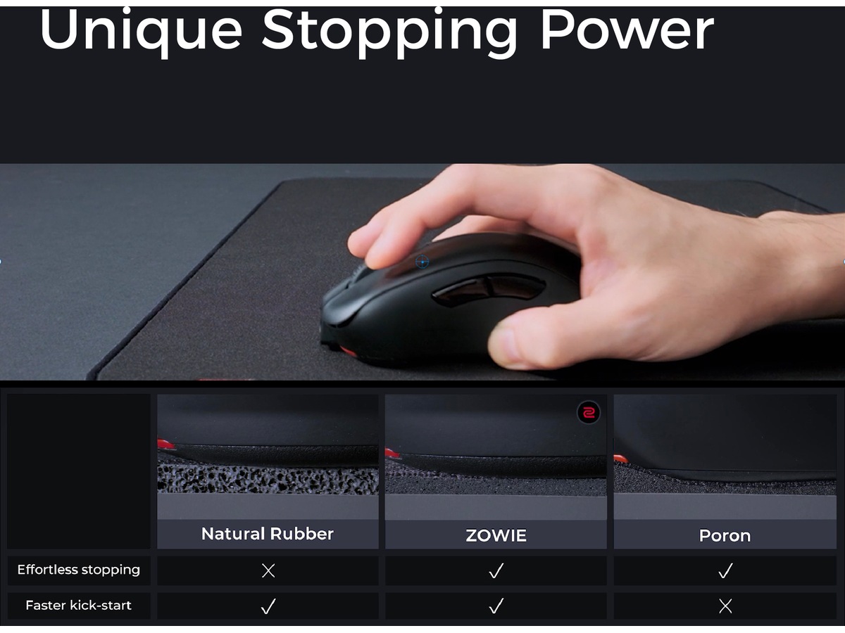 ZOWIE:s nya halkfria bas förbättrar stabiliteten och minskar att musmattan glider vid intensivt spelande.