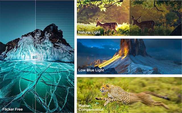 * Ögonvårdteknologierna är utformade för att förbättra visningskomfort och minska ögontrötthet, men de är inte avsedda som medicinska behandlingar.