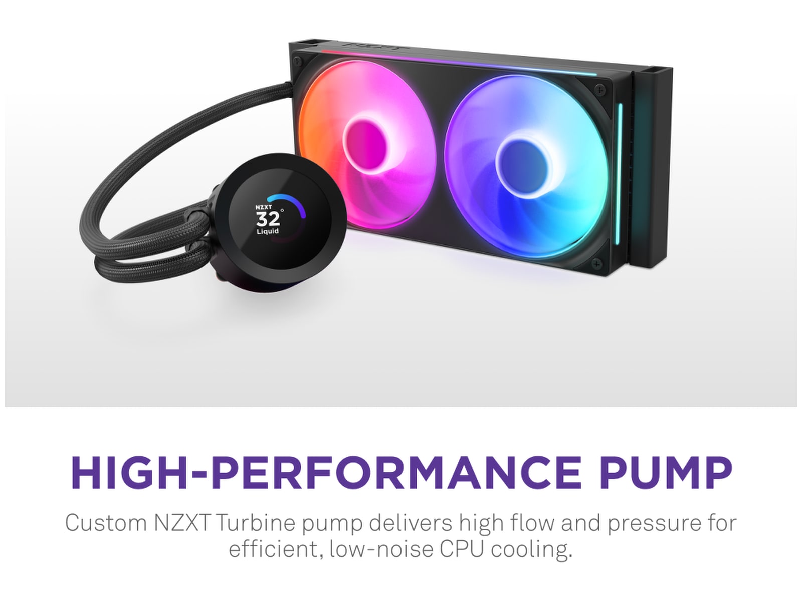 • Högpresterande kylning: NZXT Turbine pumpen är konstruerad för hög flöde och tryck, vilket ger effektiv, lågbrusig kylning för att hålla din CPU i toppform vid tunga arbetsbelastningar.