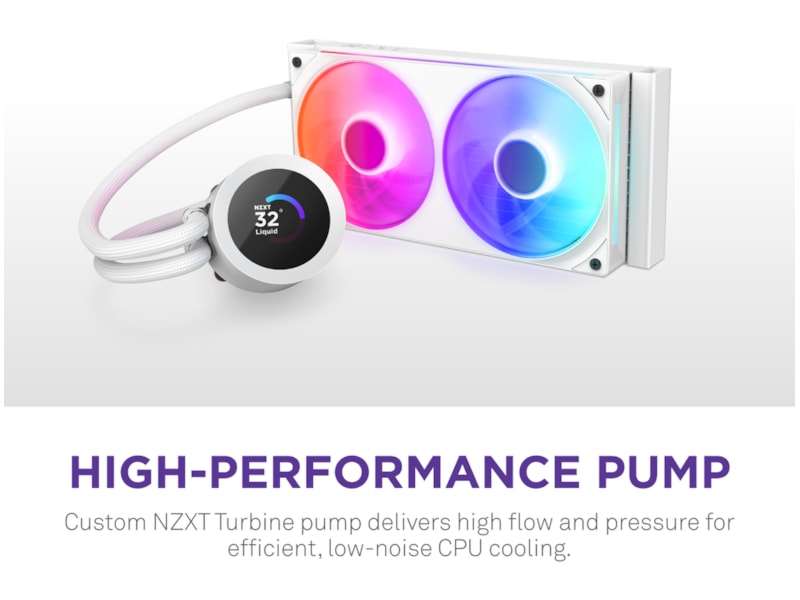 • Högpresterande kylning: NZXT Turbine pumpen är konstruerad för hög flöde och tryck, vilket ger effektiv, lågbrusig kylning för att hålla din CPU i toppform vid tunga arbetsbelastningar.
